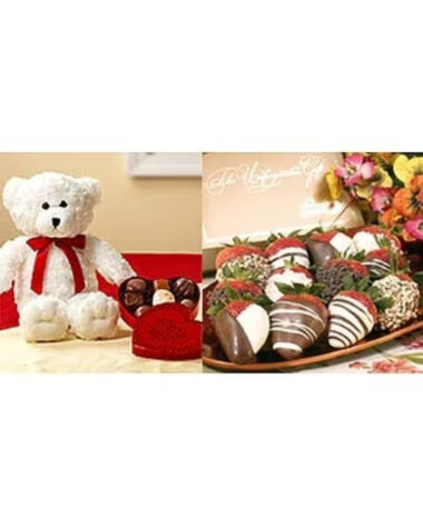 out of 5 1 Anniversary, Birthday, Congratulations, For Him, Get Well, Just Because, Love & Romance, Make Someone Smile, New Baby Dozen Chocolate Covered Strawberries & Bear From $59.95