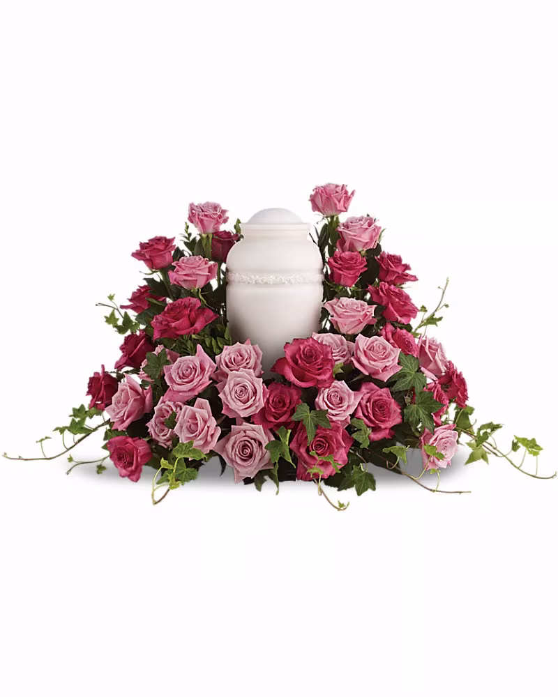 out of 5 1 Funeral Service Bouquets, Photo & Urn Tributes, Sympathy Bouquets Bed of Pink Roses From $169.95