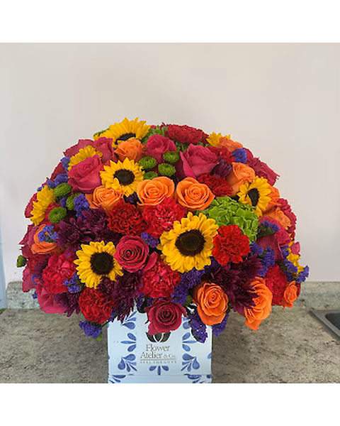out of 5 1 Blooms In A Box Collection, Uncategorized Large Square Talavera Box W/ Colorful Mix From $449.95