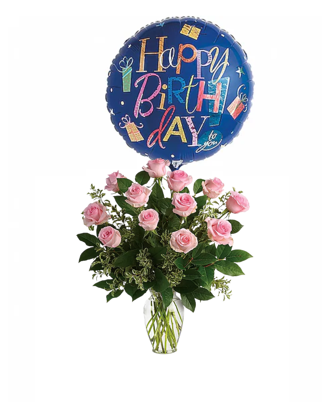 Say it sweeter with this feminine bouquet of a dozen ballet pink roses and lush greens in a graceful glass vase.