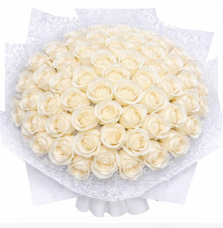 Choose to send your special person a beautifully arranged White Rose ramo buchon! We offer two sizes, 50 white roses or 100 white roses. Don’t forget to add chocolates covered strawberries to make it extra sweet! Paper colors will vary upon availability.