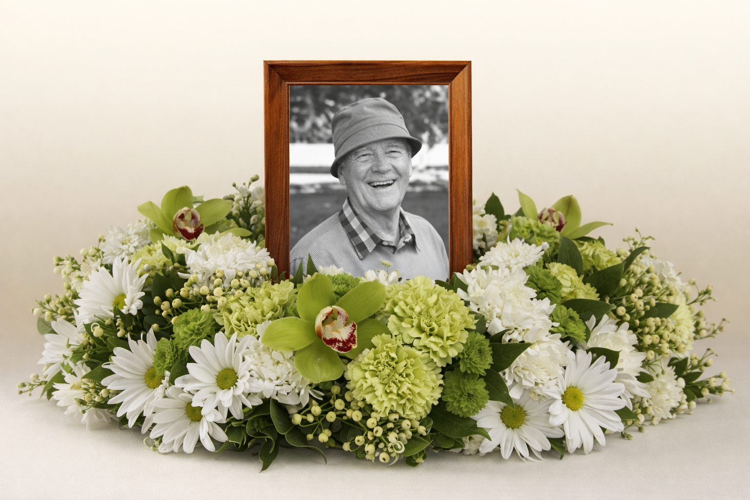 A circular wreath is a timeless expression of eternity and remembrance. Our flower wreaths for funeral services are carefully designed to bring peace and beauty to solemn gatherings. The Garden Wreath surrounds cherished memories with green cymbidium orchids, carnations, and chrysanthemums—representing the cycle of life and lasting love.